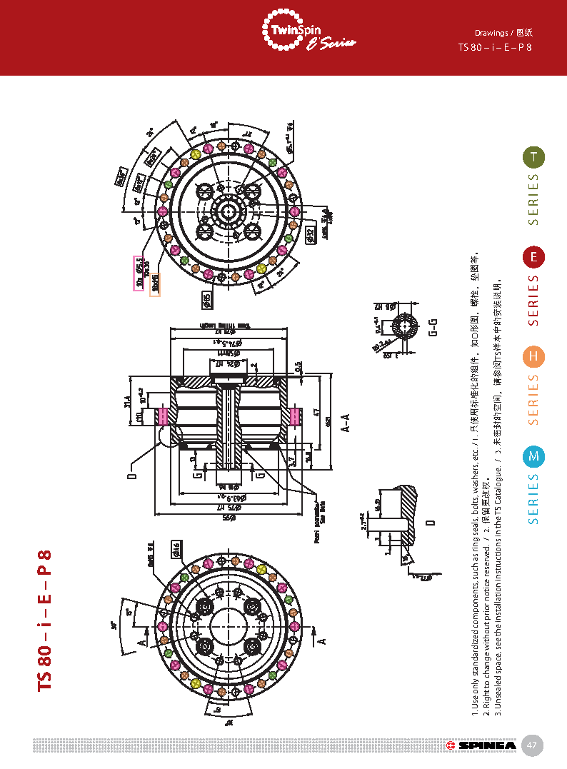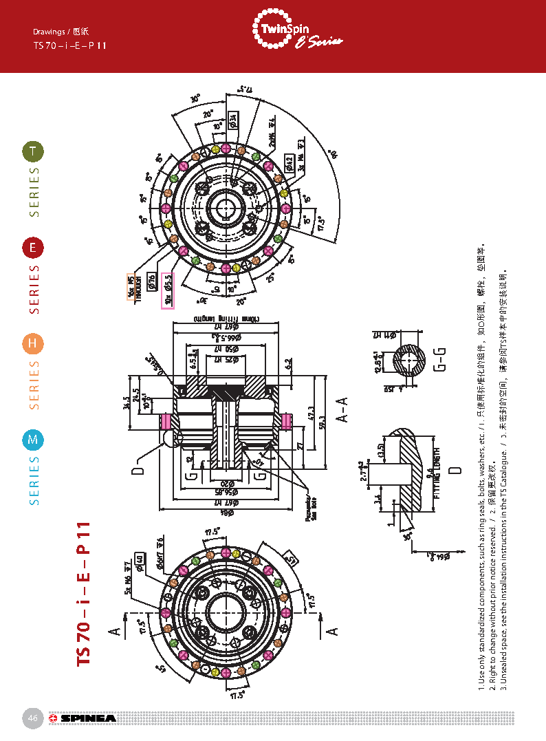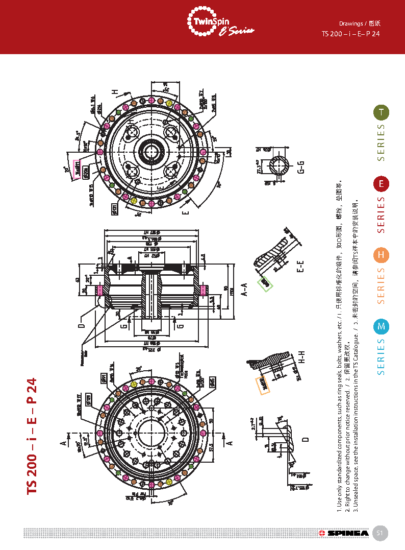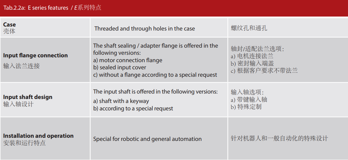 E 系列是帶有法蘭形殼體的Twinspin高精度減速機。 該系列內(nèi)部包含精密減速機構(gòu)和高強度交叉滾子軸承,又 名“軸承式減速機”。這種設(shè)計可以把負載直接安裝在減 速機輸出法蘭上,省去輸出端的額外軸承。 T系列采用模塊化設(shè)計,允許用戶通過電機法蘭的方式連 接各種電機。 標準的T系列減速機為半密封狀態(tài);需要用輸入法蘭和墊 圈密封。SPINEA可根據(jù)客戶電機結(jié)構(gòu)提供全密封帶輸入 法蘭的減速機。