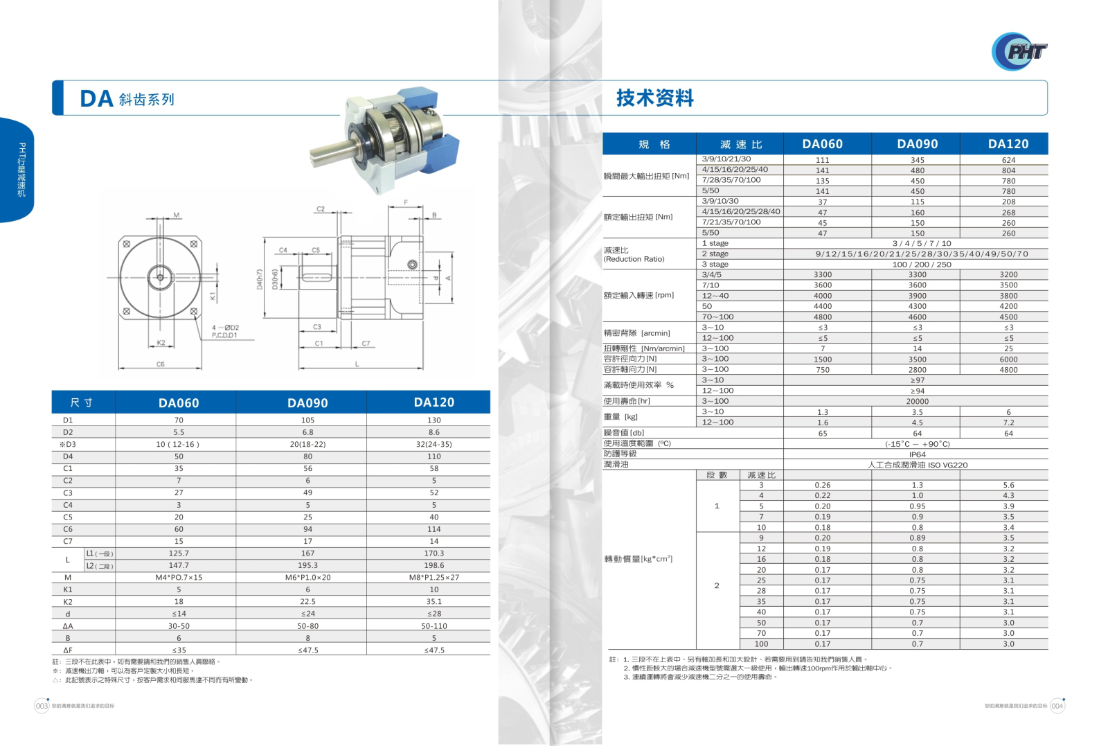 DA 系列是斜齒輪高精度減速機(jī)。 品宏減速機(jī)的軸承是用NSK品牌的,齒輪經(jīng)過(guò)碳化,故精度和剛性都比較優(yōu)越!減速機(jī)出力軸是可根據(jù)客戶的要求去定制大小和長(zhǎng)短的。