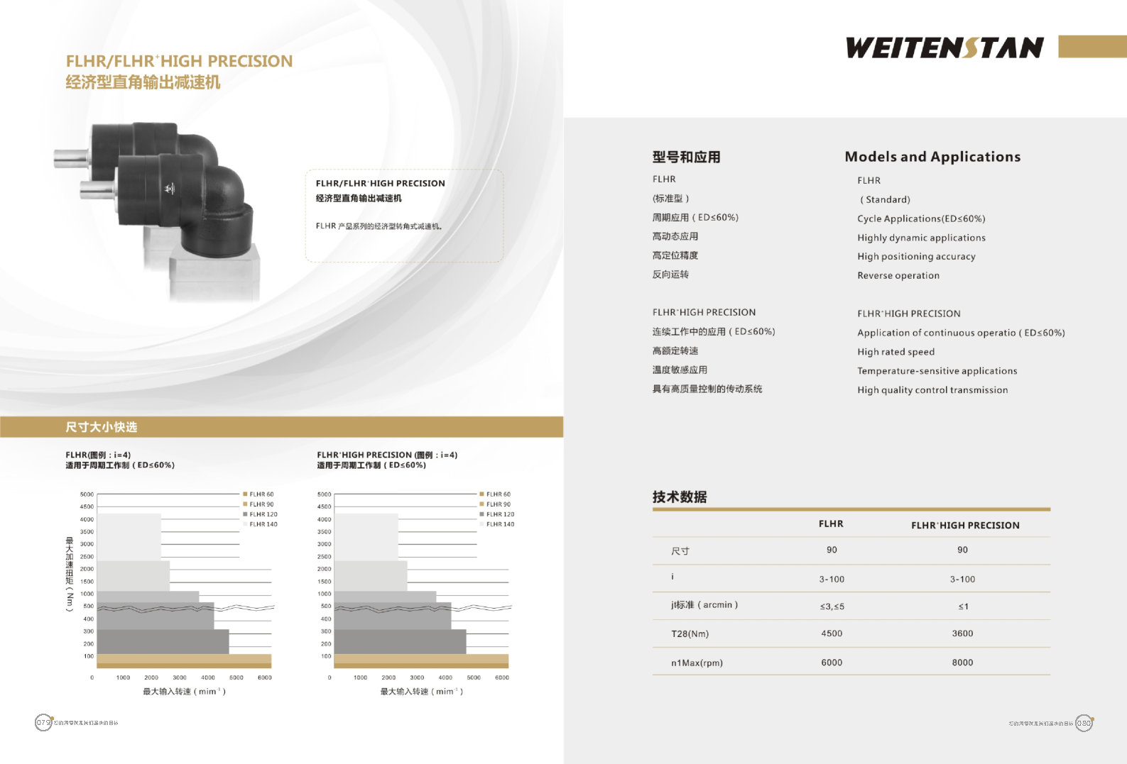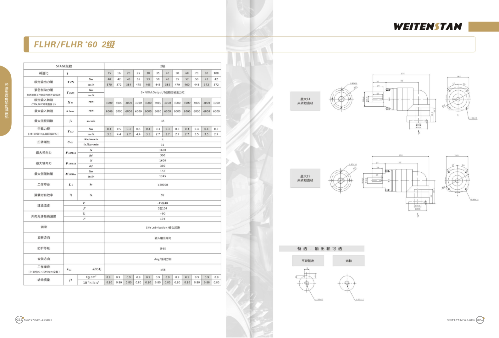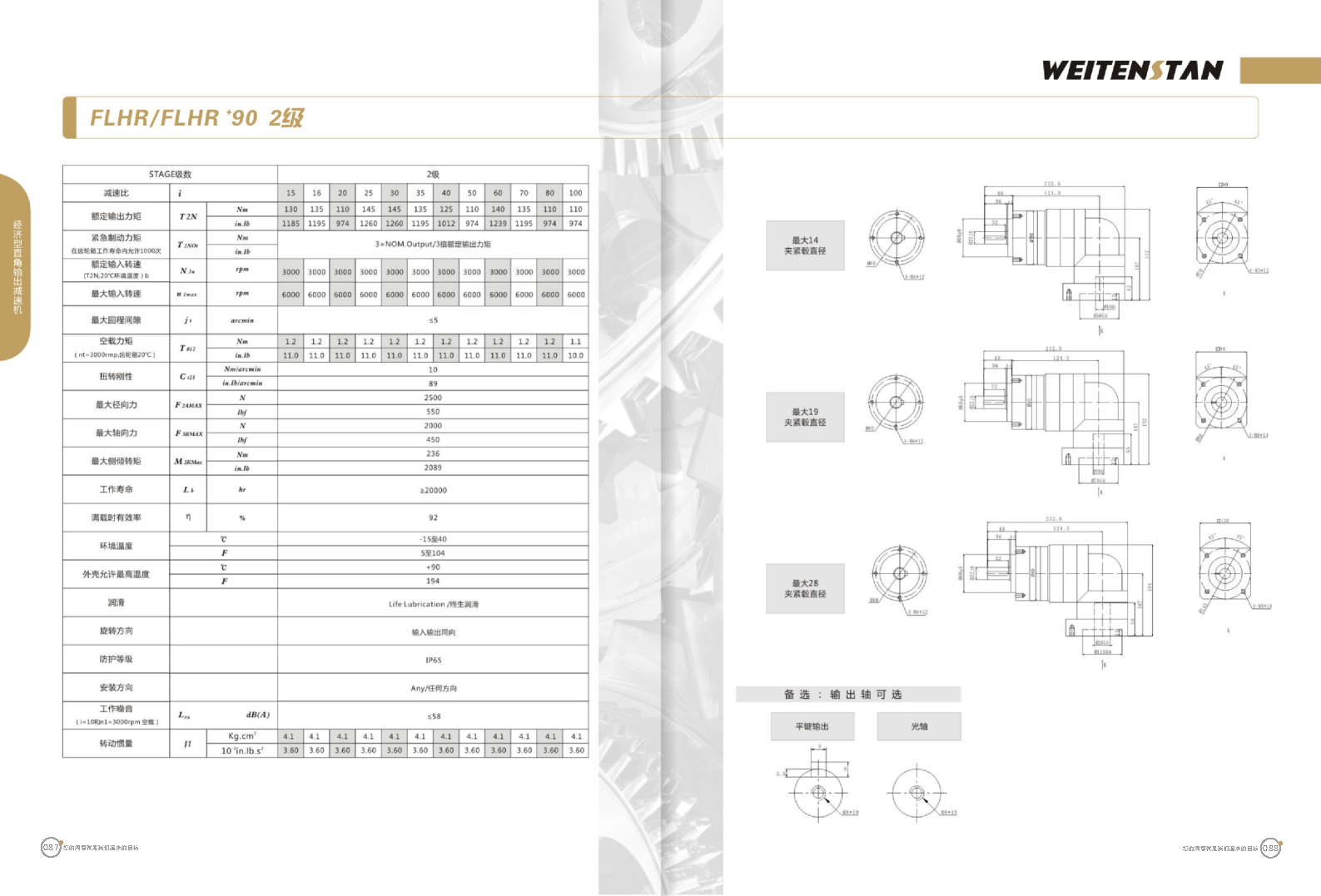 FLHR系列經(jīng)濟型直角輸出減速機。 FLHR產(chǎn)品系列的經(jīng)濟型轉(zhuǎn)角式減速機。 極高的功率密度。盡管以往系列性能極為出色,但我們成功的將扭矩提高了近40%。不斷提高極限值,典型威騰斯坦產(chǎn)品! 電機安裝簡易。電機可安全簡易的一步安裝,另外您也可以選擇威騰斯坦享有的專利權(quán)的,帶有長度補償軸的安裝。 任意位置安裝。不管你在哪個位置安裝,你的齒輪箱始終有相同的潤滑油/潤滑脂量。安裝靈活、齒輪箱能夠垂直、水平、與從動軸一起向上或向下安裝。 極高的定位精度。根據(jù)用戶需求,你可獲得回程間隙小于角分的高型行星齒輪箱。這也大大提高了你應(yīng)用上的定位精度。 通過齒輪嚙合,運轉(zhuǎn)平穩(wěn)。相比直齒嚙合齒輪箱,本公司的斜齒嚙合齒輪箱運轉(zhuǎn)噪音減低了50dB-A,你深知50dB-A所創(chuàng)造的價值遠(yuǎn)遠(yuǎn)高于70dB-A。此外還有:不再感動振動,運轉(zhuǎn)平穩(wěn)到令人驚訝。 世界水平的預(yù)期壽命。原材料進(jìn)行了優(yōu)化,幾何形狀同樣進(jìn)行了優(yōu)化。